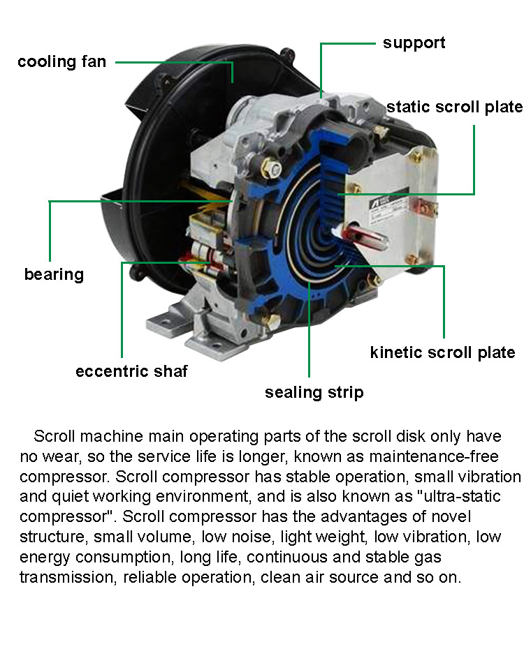 Product name:8kW 0.8m3/min Oil-free scroll air compressor E-10C Silent food and beverage medical laboratory air compressor