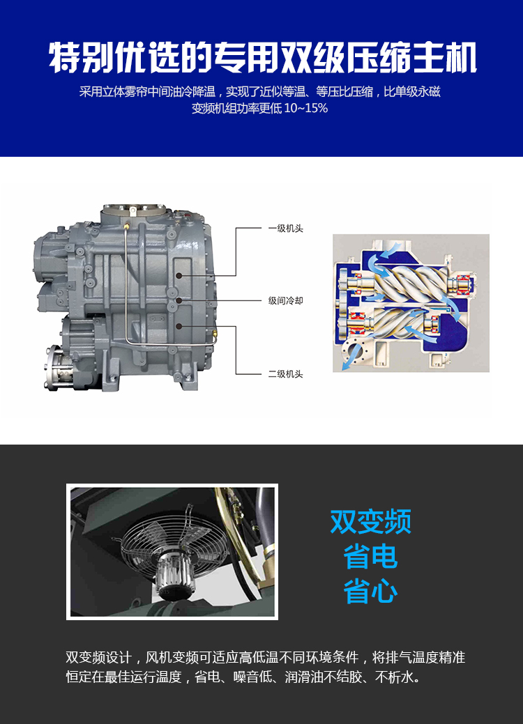 Two stage compression permanent magnet variable frequency screw air compressor