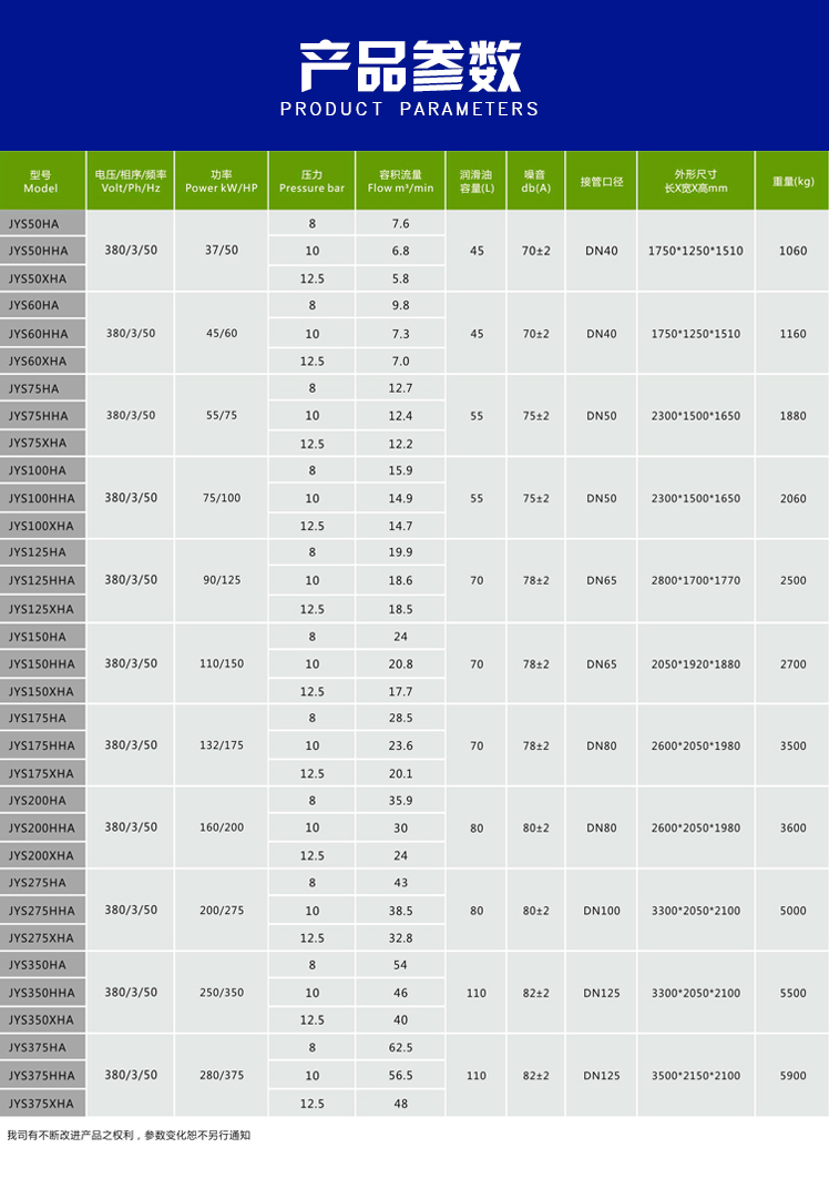 Product name:75KW JYS100 Two stages screw air compressor