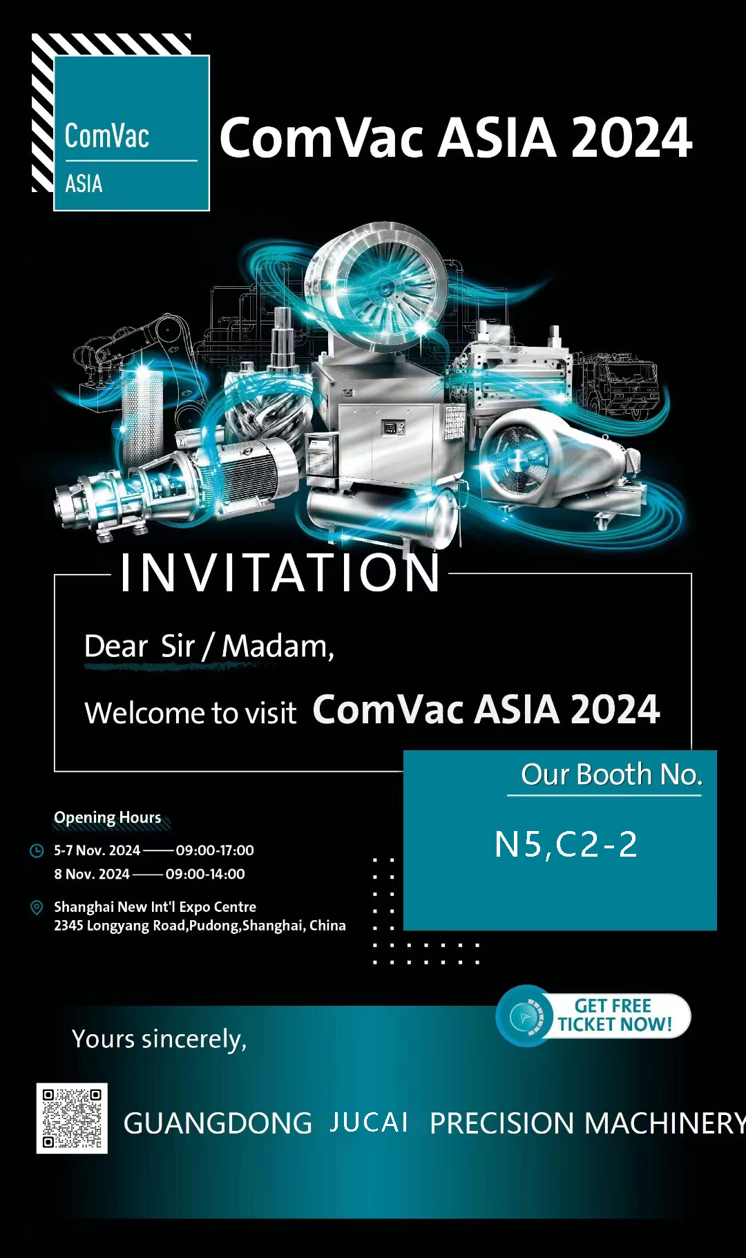 2024 Shanghai International Compressor & Equipment Exhibition will be held on November 5-8, 2024 in Shanghai New International Expo Center. At that time from the world's top companies in the air compressor industry and quality buyers from all over the world gathered in this event, Jucai Industrial (Shenzhen) Co., Ltd. is honored to get a seat, its booth number: N5 Hall C2-2, the first 300 booking registration free of charge, you are welcome to contact us to make an appointment to register.