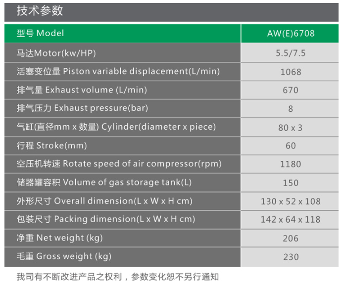 標題:5.5kW/7.5HP 新型節能環保活塞空壓機 AW6708