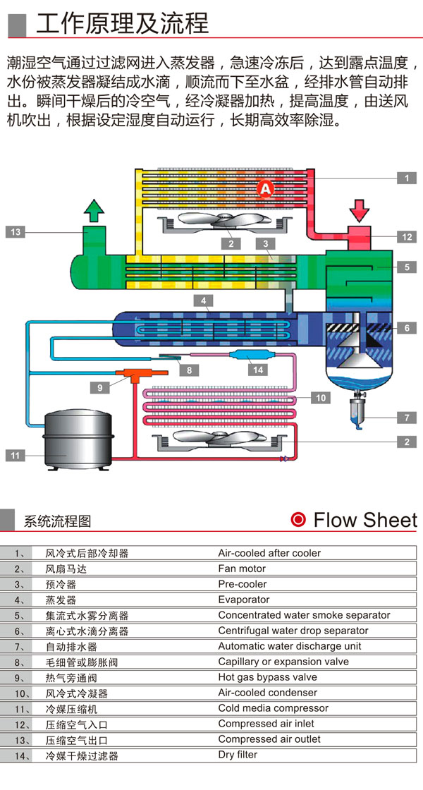 所有產品按全天候運作設計,充分考慮壓縮機高氣溫(80°C 高溫可以直接輸入)合并后置冷卻器,具備高熱交換功能,以保護空氣干燥器。