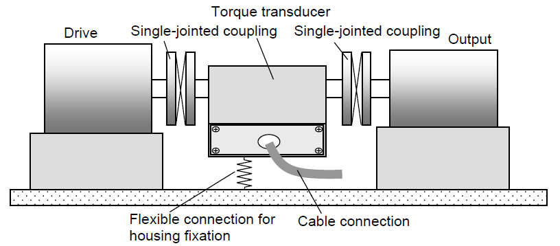 不帶基座的扭矩傳感器安裝,注意只需要用彈性的支架稍微固定一下外殼即可;