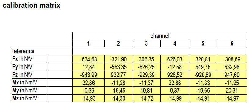 例如:(某六維力傳感器標定證書數(shù)據(jù))