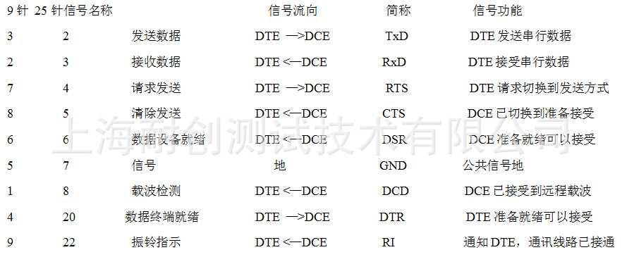 圖1-1 RS232接口中DB9、DB25管腳信號定義