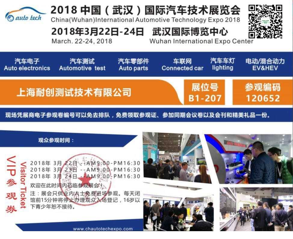 2018中國(武漢)汽車測試測量技術(shù)展覽會是第五屆中國國際汽車技術(shù)展覽會(簡稱Auto Tech)六大專題展之一,將于2018年3月22日-24日在武漢國際博覽中心盛大舉辦,將和車聯(lián)網(wǎng)技術(shù)展、新能源汽車技術(shù)展、汽車輕量化技術(shù)展以及汽車電子技術(shù)展等聯(lián)袂呈現(xiàn)。屆時將匯集全球500多家領(lǐng)先參展商向廣大汽車工程師展示先進的測試技術(shù)產(chǎn)品。同時組委會邀請諸如東風(fēng)、神龍、長安、福特、比亞迪、上汽、吉利、通用、一汽、北汽、廣汽、奔馳、寶馬、大眾、豐田、博世、大陸、麥格納等汽車OEM廠商及Tier 1 汽車零部件供應(yīng)商的上萬名采購、技術(shù)工程師匯聚一堂,參加展會。